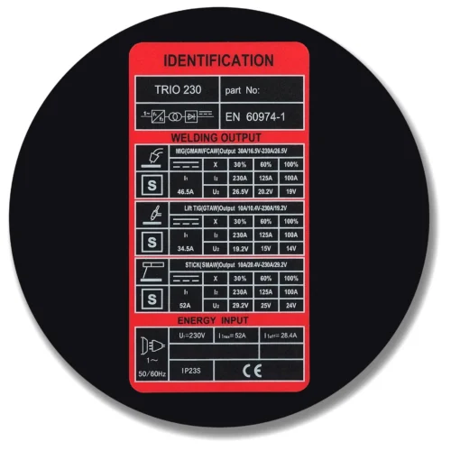 - MIG/MAG-Schweißstrombereich: 30 – 230 A; MMA: 15 – 230A; TIG: 15 – 230A