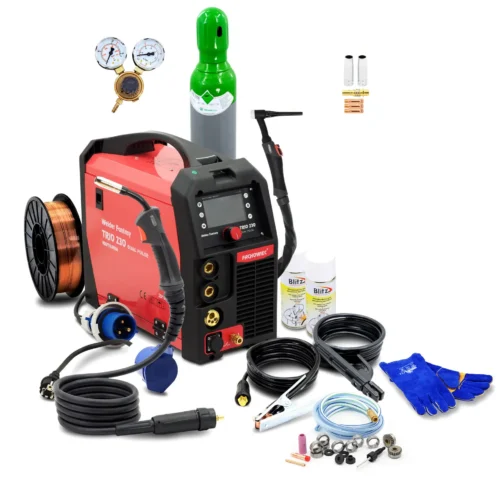 Das Schweißset Welder Fantasy TRIO DUAL PULSE ist eine moderne Inverter-Stromquelle, die viele Möglichkeiten beim Schweißen bietet. Der Hauptvorteil dieses Geräts besteht darin, dass es sowohl im MIG- als auch im MAG-Modus mit Einzel- oder Doppelpulsstrom geschweißt werden kann und auch synergistische Einstellungen ermöglicht. Das Set enthält alle notwendigen Zubehörteile wie Schweißgriffe, Kabel, Gasflasche und Schweißdraht.