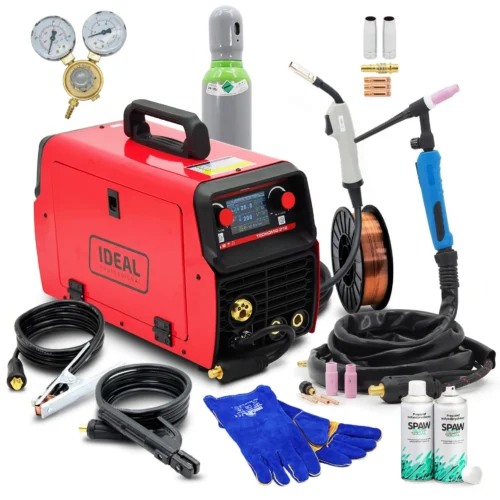 SCHWEISSGERÄTESET IDEAL TECNOMIG 212 SYNERGIE TIG-HALTERUNG FLASCHENREDUZIERER DRAHT