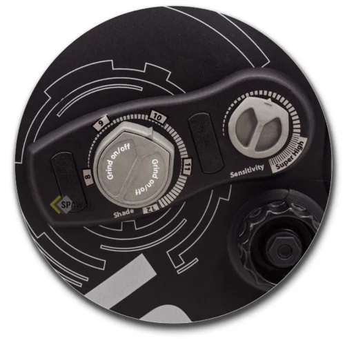 - Stufenlose Einstellung der Abdunkelungsstufe zwischen 8-12 DIN, von außen zugänglich (kein Abnehmen des Helms erforderlich)