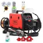 Das Schweißset PRAKTIK MIG 200 IGBT 200A ist ein Inverter-Schweißgerät, das das Lichtbogenschweißen mit der MIG/MAG-, MMA- und FLUX-Methode ermöglicht. Es eignet sich ideal für eine Vielzahl von Anwendungen, von Wartungsarbeiten bis zur Reparatur von Fahrzeugkarosserien. Das Set enthält alle notwendigen Zubehörteile wie MIG-Schweißbrenner, Masse- und Elektrodenkabel, ESAB-Schweißhelm, Flaschenreduzierer, MIG/MAG-Schweißdraht und Satz magnetischer Winkel.