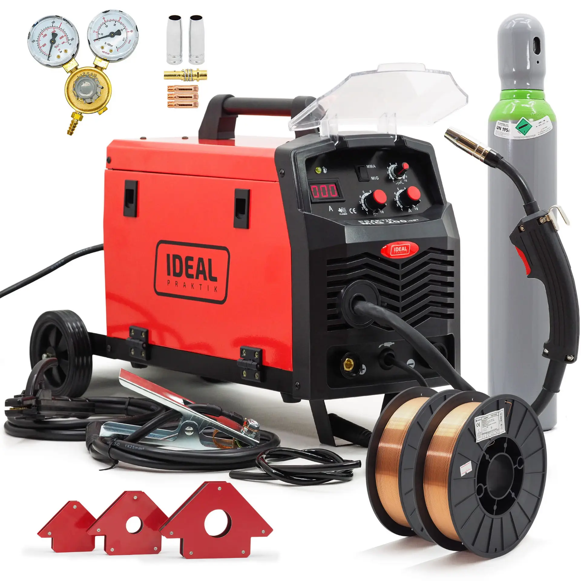Schweißset PRAKTIK MIG 200 IGBT 200A Gasflasche Reduzierer Draht