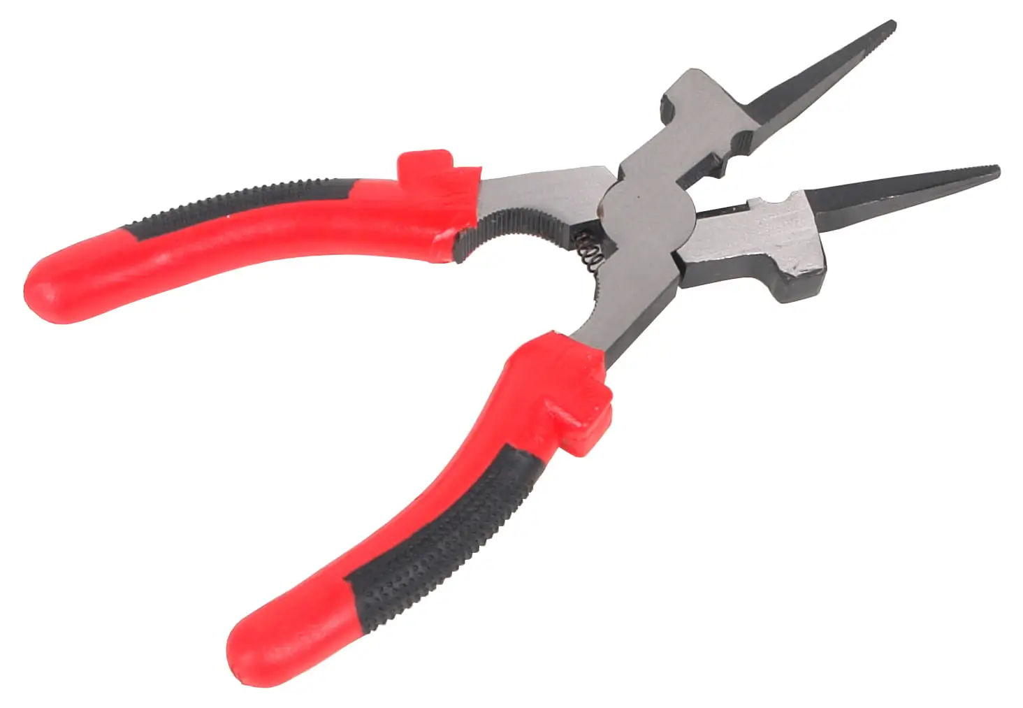 Habe einen Schwarzen und nicht den Roten auf dem Foto. Spitzen sind zu breit für MB15 Brenner. Mit einer Seite kann man die abgenommene Düse auskratzen. Meine Griffe sind gummiert und nicht aus Plastik wie auf dem Foto. Sie werden genauso locker wie bei anderen Zangen.