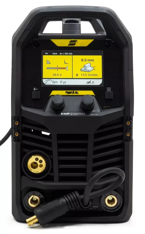 ESAB Rogue EMP 210 PRO ist ein inverterbasiertes Multiprozess-Schweißgerät für alle Ihre Schweißprojekte, vom Metallbau bis zur Reparatur und Instandhaltung. Das Gerät zeichnet sich durch Schweißergebnisse in Industriequalität und umfassende Einstellmöglichkeiten aus, die es dem Schweißer ermöglichen, die Lichtbogeneigenschaften auf das zu schweißende Material abzustimmen. Mit einem Gewicht von nur 16,7 kg, einem einphasigen 230 V Netzanschluß Höchstmaß an Flexibilität.