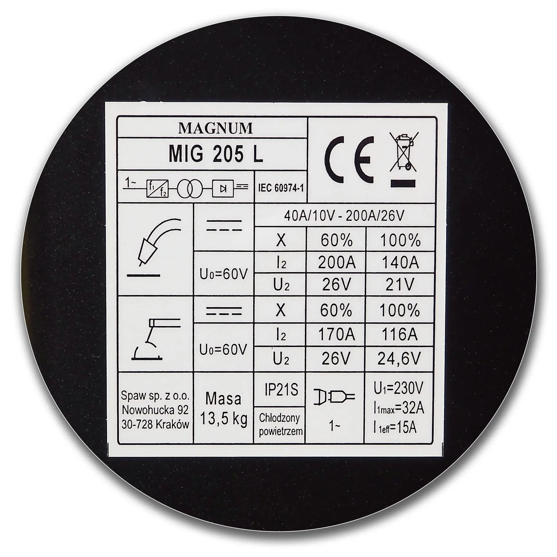 - MIG/MAG-Schweißstrom: 40 – 200A