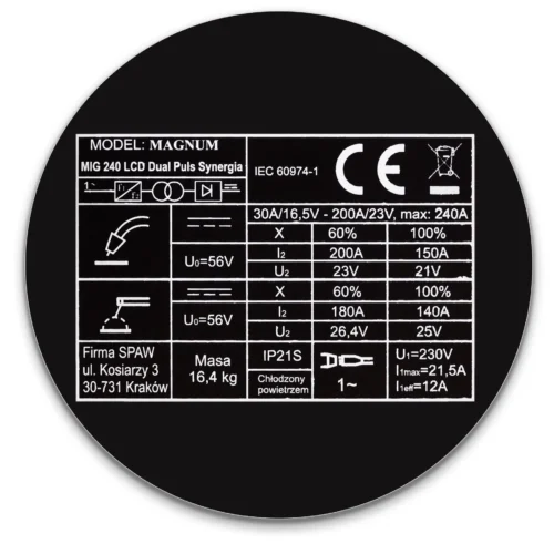Beschreibung: Das MAGNUM MIG 240 DUAL PULS LCD 240 Flasche Drahtregler Set ist ein professionelles Werkzeug zum Schweißen mit der MIG/MAG-Methode. Dieses fortschrittliche Set bietet eine hohe Schweißqualität und Präzision.