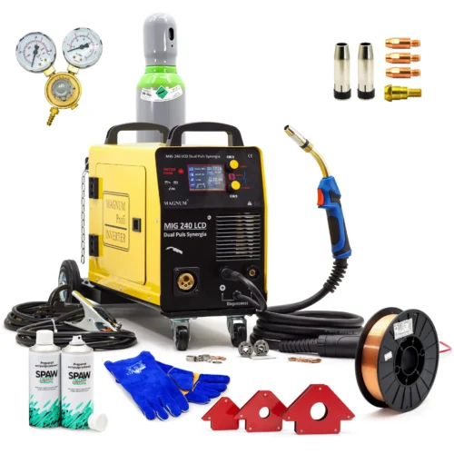 • MAGNUM MIG 240 DUAL PULS LCD 240 Flasche Drahtregler Set