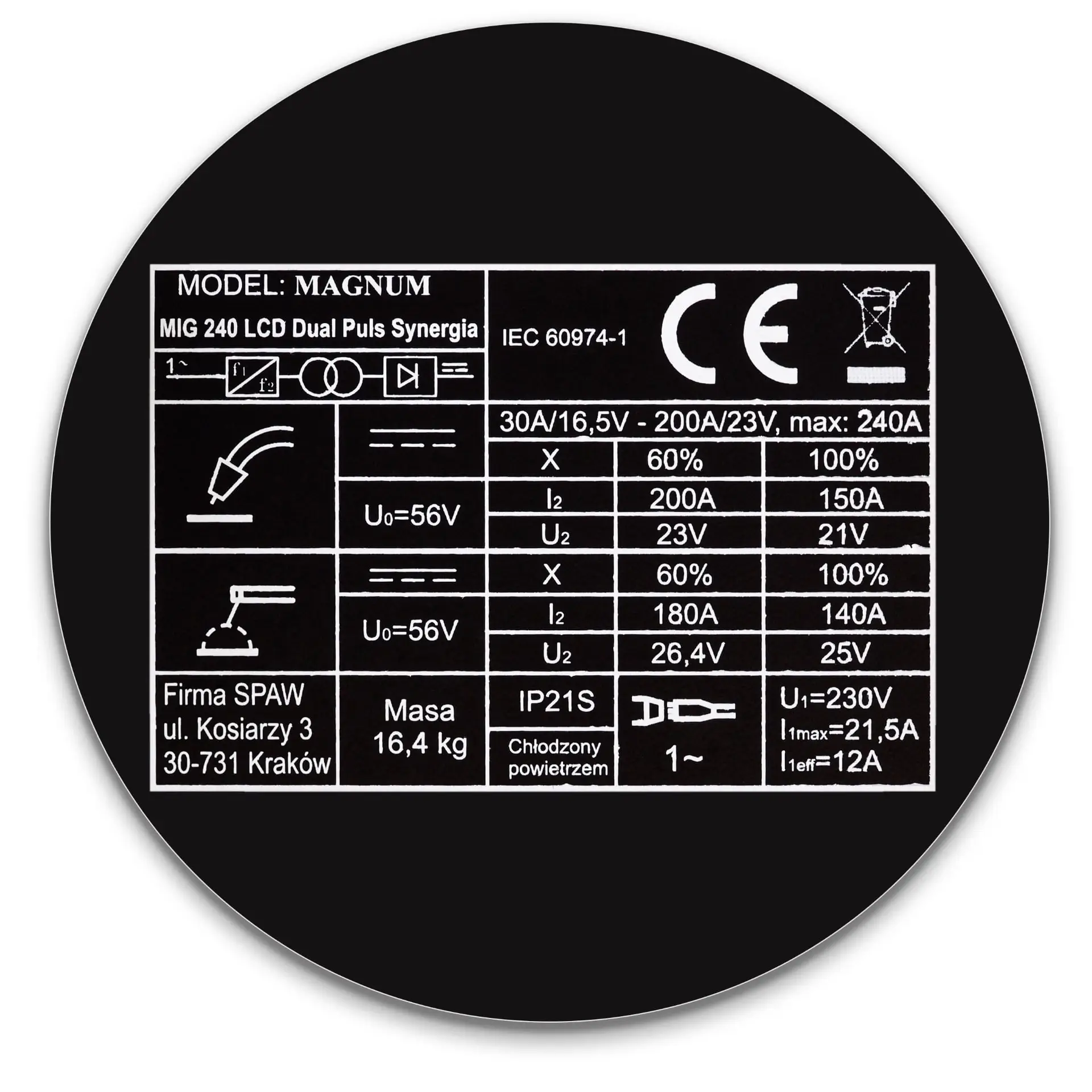 • Schweißstrombereich: 30-240A