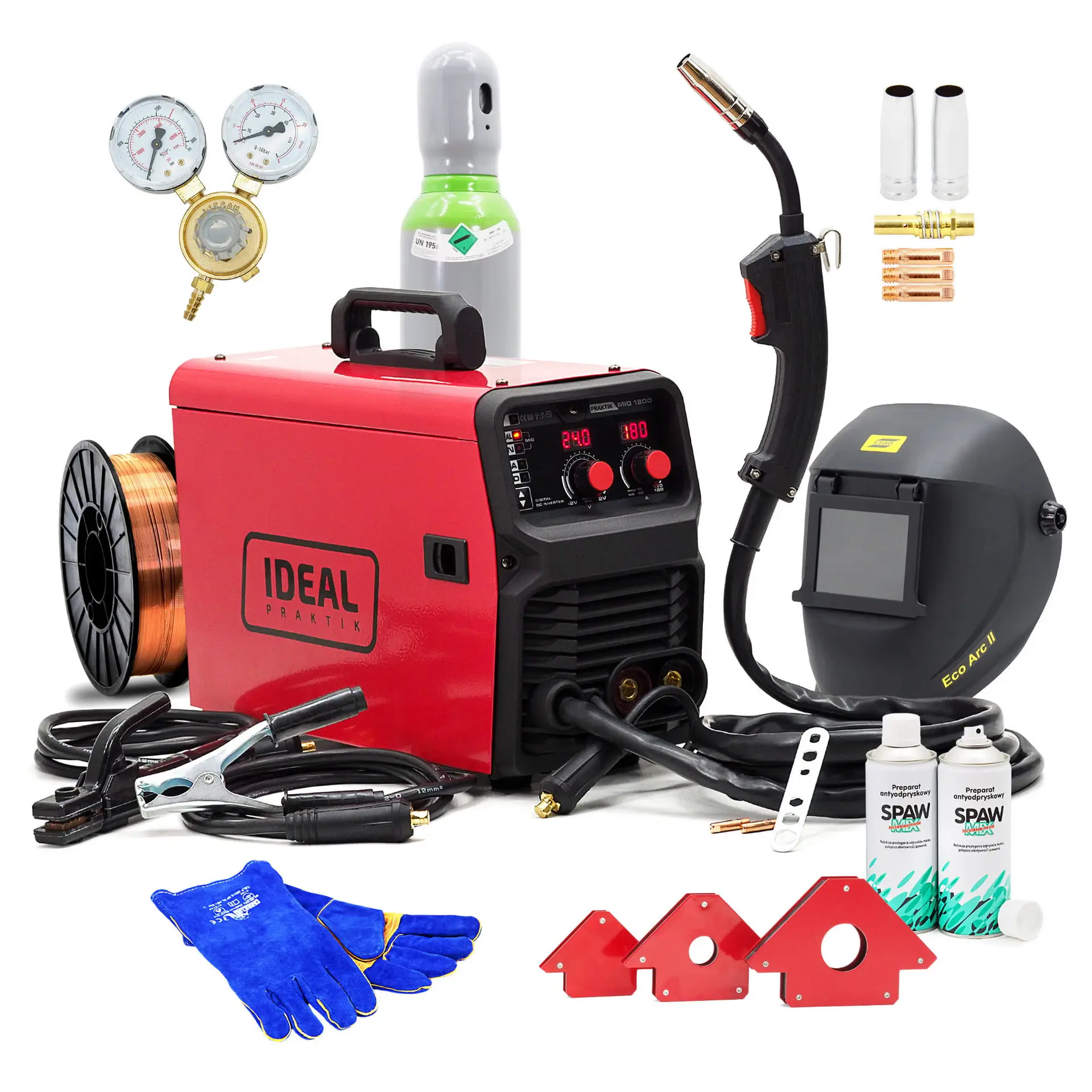 SET Schweißgerät IDEAL PRAKTIK MIG 1800 180A SCHUTZHELM ESAB FLASCHE REDUKTOR