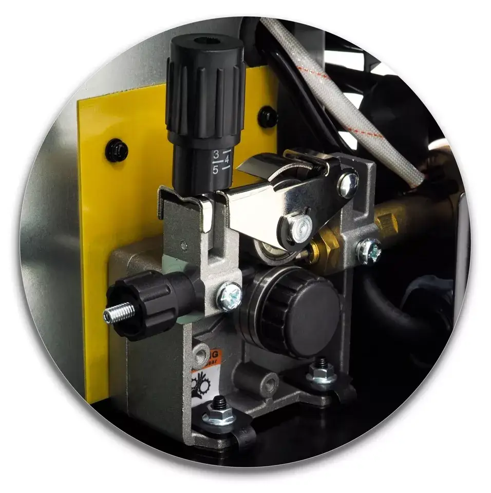 Professionelle Zwei-Rollen-Zuführung, sorgt für eine gleichmäßige Zuführung des Schweißdrahtes. Stabile Ausgangsparameter garantieren eine hohe Schweißqualität.