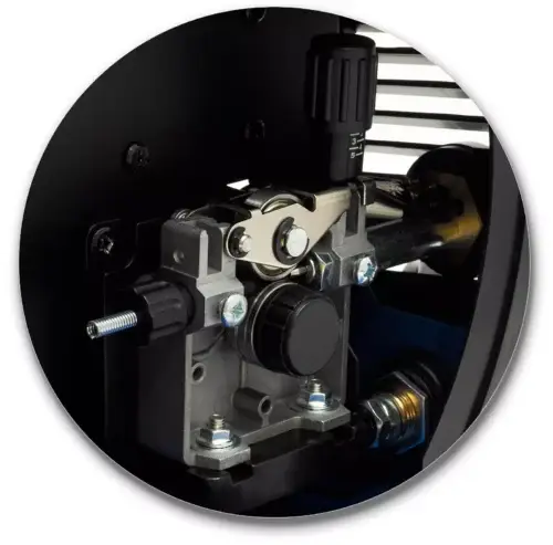 Regulierung der Induktivität – Sie ermöglicht die Optimierung des Schweißprozesses in Abhängigkeit von der Dicke des Werkstücks und den Schweißbedingungen. Durch die Verringerung der Induktivität wird der Lichtbogen stabiler und konzentrierter und erzeugt somit eine bessere Durchdringung. Eine Erhöhung der Induktivität, die beim Schweißen dünner Werkstücke sinnvoll ist, erzeugt ein glatteres Schweißbad. Der Lichtbogen wird weicher und es treten weniger Spritzer auf. Nützlich bei dünnen Werkstücken und beim Hartlöten, um eine Beschädigung der schützenden Zinkschicht zu vermeiden,
