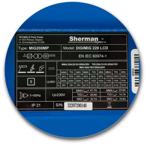 Sherman™ DIGIMIG 220 LCD 230V 200A