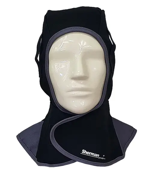 Die Schweißerkapuze besteht aus schwer entflammbarem Material und schützt Kopf, Hals, Nacken und Schultern vor Wärmestrahlung, Spritzern und kurzem Kontakt mit Flammen.