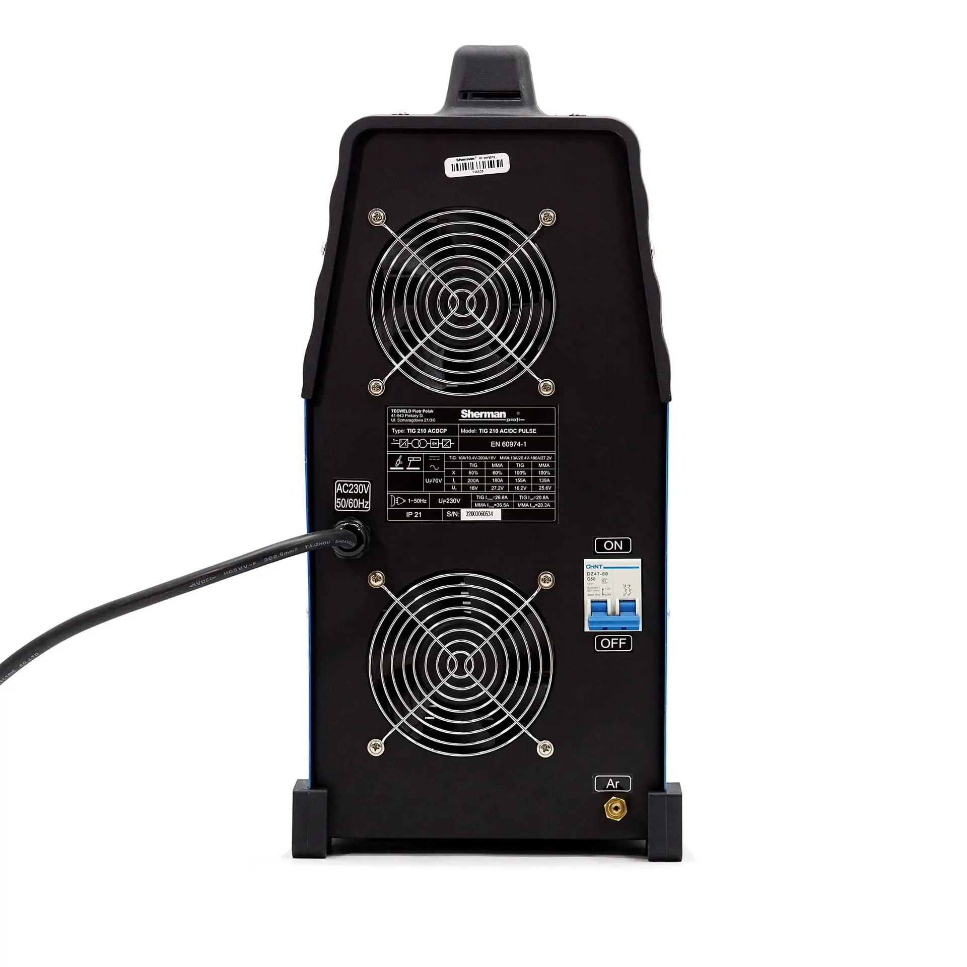 • Max. Stromaufnahme: MMA: 26,8A, TIG: 36,5A