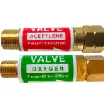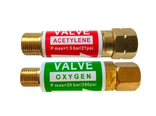 Der Satz von Sauerstoff- und Acetylen-Brennersicherungen dient zum Schutz der Gasversorgungsanlage des Brenners vor den Auswirkungen einer Flammenrückführung. Die Sicherungen verhindern den Gasfluss in entgegengesetzter Richtung zum normalen Fluss. Das Produkt ist neu und mit einer Garantie versehen.