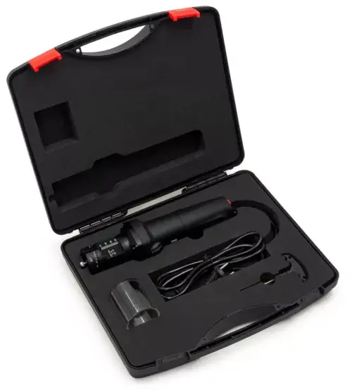 Das Schärfgerät, komplett mit Staubschutz und Kupplungsschlüssel, wird in einem praktischen und robusten Koffer angeboten.
