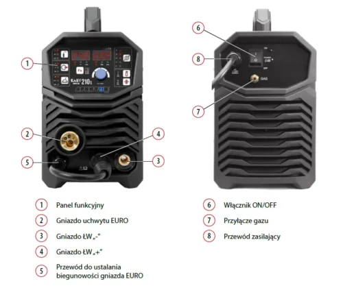 Der SPARTUS EasyMIG 210S Easy MIG Synergia 200A ist ein modernes, invertierendes Schweißgerät, das das Schweißen unter Verwendung von neutralen und aktiven Schutzgasen (MIG/MAG), das Schweißen mit umhüllter Elektrode (MMA) sowie das TIG-Lift-Schweißen mit Lichtbogenzündung ermöglicht. Das Gerät ist einfach zu bedienen und verfügt über eine Funktion zum einfachen Wechsel der Polarität, die das Schweißen mit selbstschützendem Draht ohne Gas ermöglicht. Der maximale Schweißstrom für die MIG/MAG/TIG-Verfahren beträgt 200A, für das MMA-Verfahren beträgt er 160A. Das Gerät wird mit einphasigem 230V-Netzstrom betrieben.