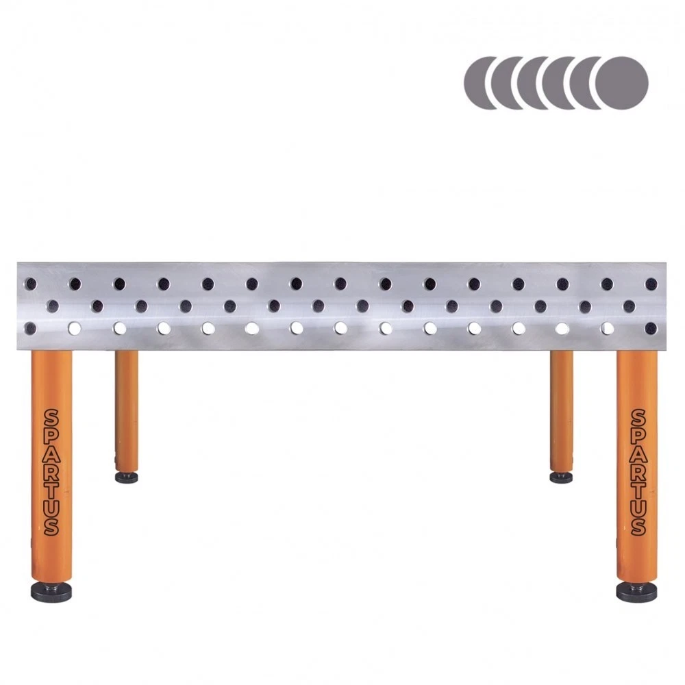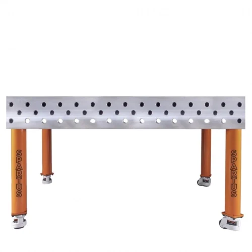 Die Tischplatte ist aus Stahl S355J2+N geschweißt, der sich durch hohe Festigkeit und Widerstandsfähigkeit gegen Stöße und Verformungen auszeichnet und Schutz vor Korrosion und Schweißspritzern bietet.