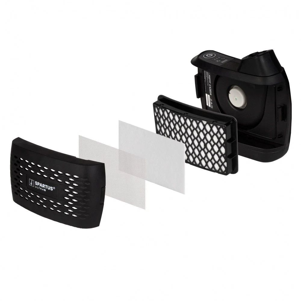 Für das Belüftungssystem, das mit dem Helm SPARTUS Ultra NX47 zusammenarbeitet, können zusätzlich die Gasfilter A2 und ABEK1 verwendet werden, die den Schutz in Umgebungen mit organischen Dämpfen und gefährlichen Gasen wirksam erhöhen. Um ihre Leistungsfähigkeit voll auszuschöpfen und einen unterbrechungsfreien Betrieb unter anspruchsvollen Bedingungen zu gewährleisten, wird die Verwendung von Batterien mit erhöhter Kapazität empfohlen.