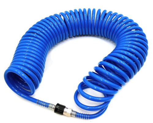 Der Spiralschlauch für Druckluft eignet sich zur Versorgung von Werkzeugen, Zubehör und Standard-Pneumatikinstallationen.