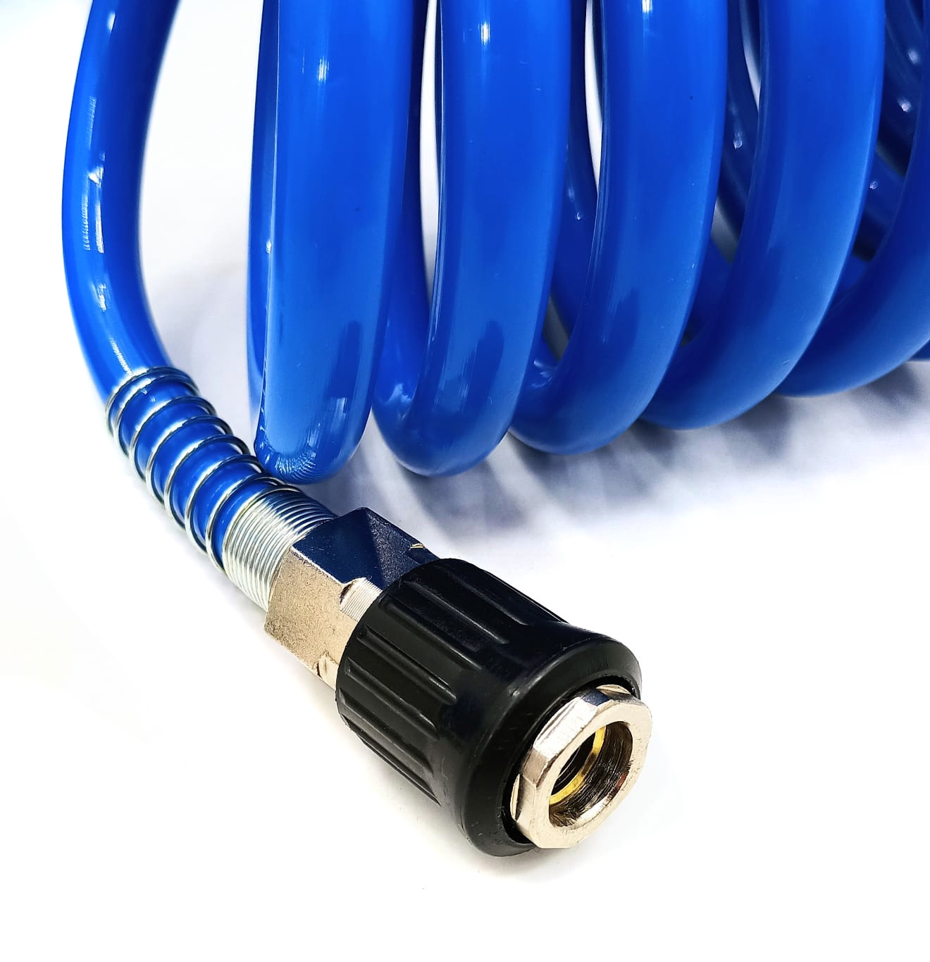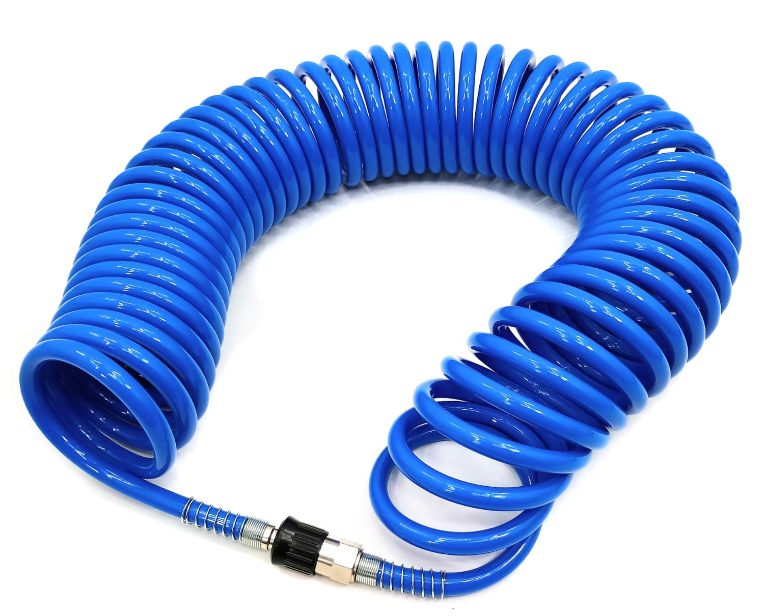 Spiralschlauch Pneumatisch Polyurethan 8 x 12 mm, 15 m mit Schnellkupplung R26