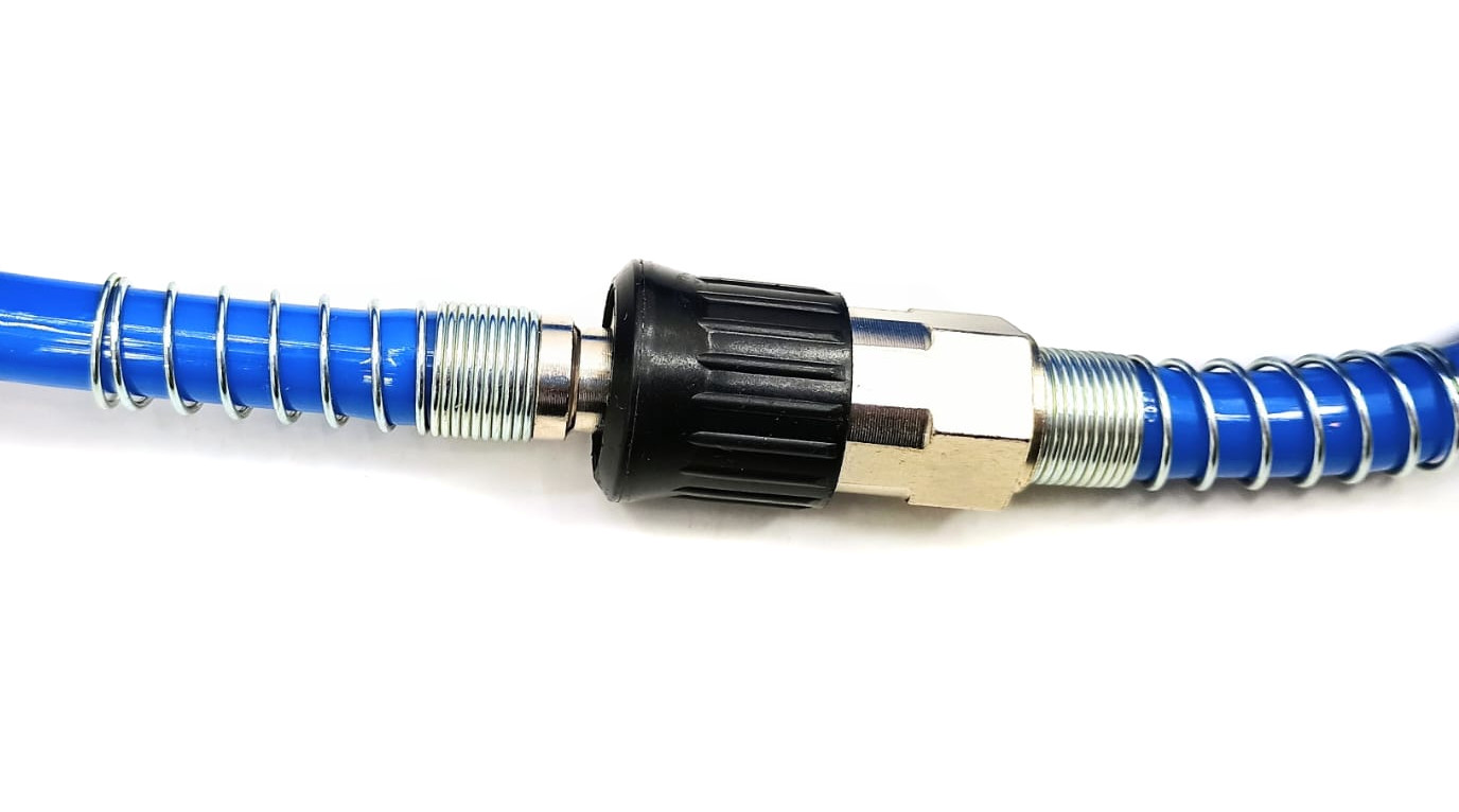 Der Spiralschlauch für Druckluft eignet sich zur Versorgung von Werkzeugen, Zubehör und Standard-Pneumatikinstallationen.