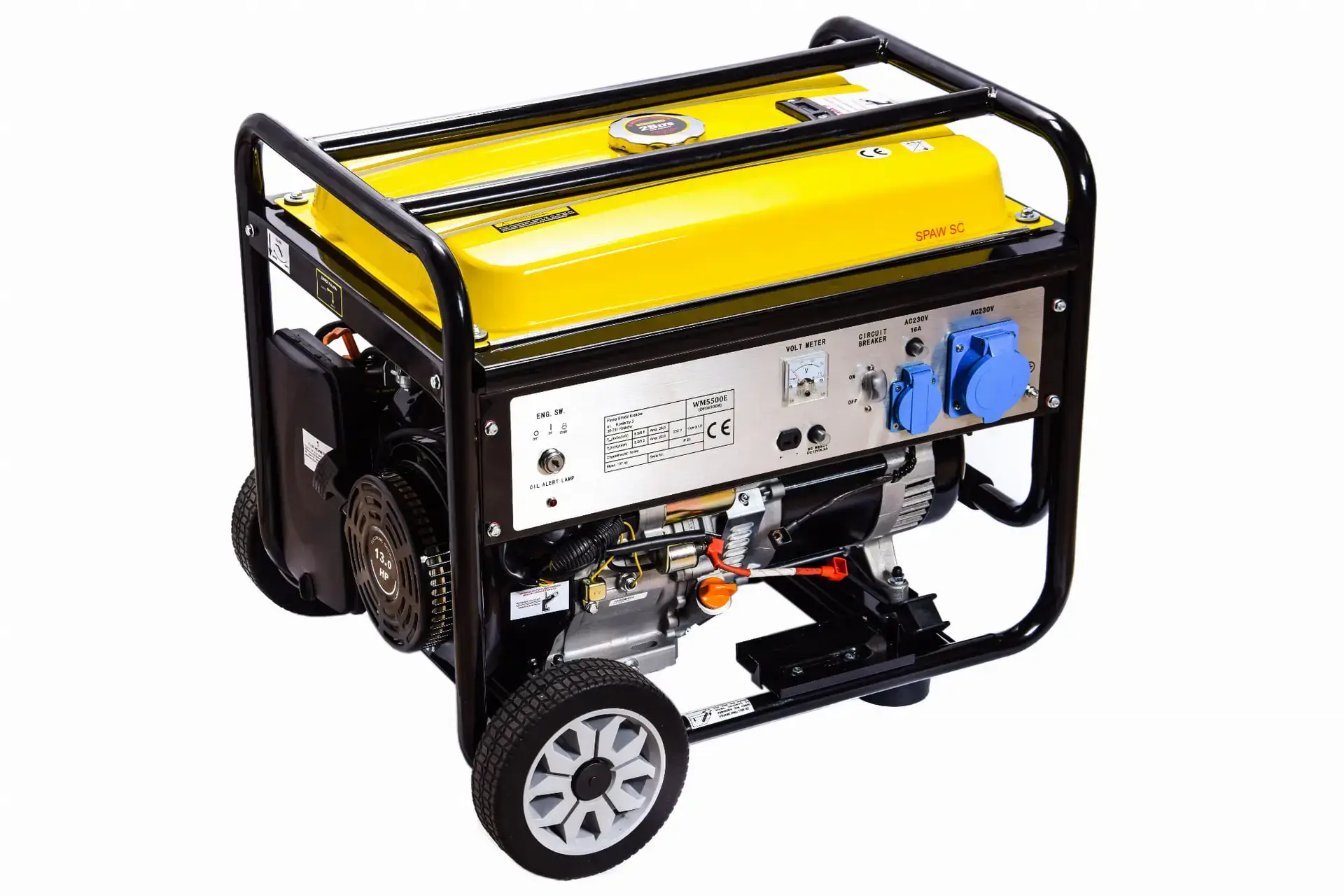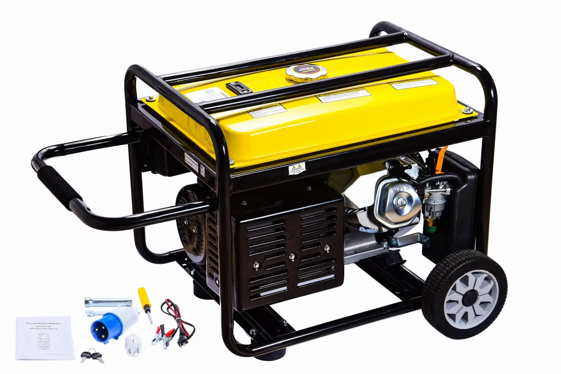 - Der Generator ist mit einer 12V-Gleichstromanlage und Kabeln zum Aufladen der Batterie ausgestattet.