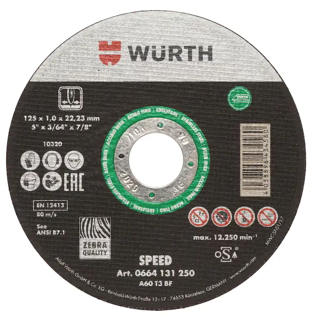 WURTH Trennscheibe für Edelstahl 125×1,0x22,23 mm